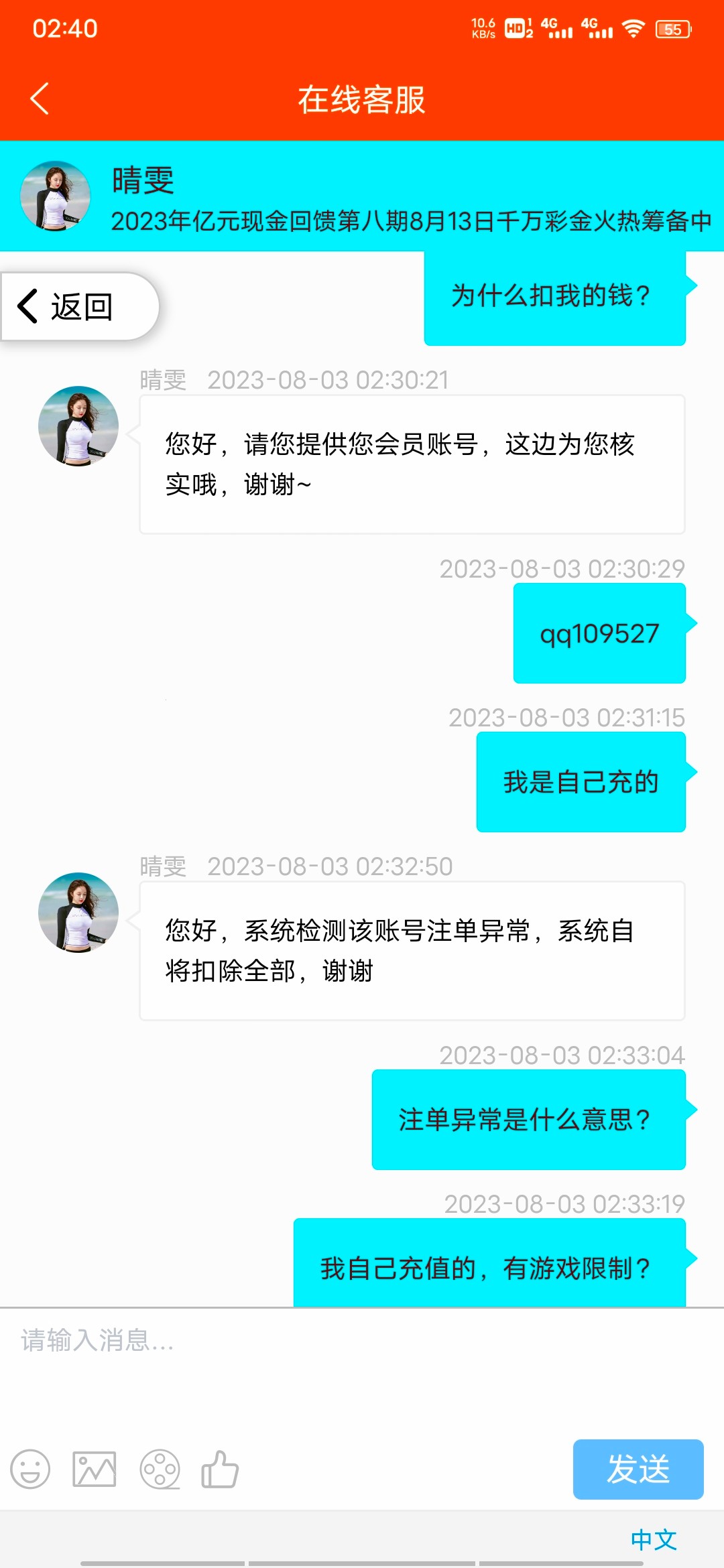 这个傻逼台是我玩过这系列最黑的一个 充值的也黑 冲了100想着拉拉电子等球赛 然后爆了600多块钱直接给你提现末入了 说非法投注 真恶心坏了