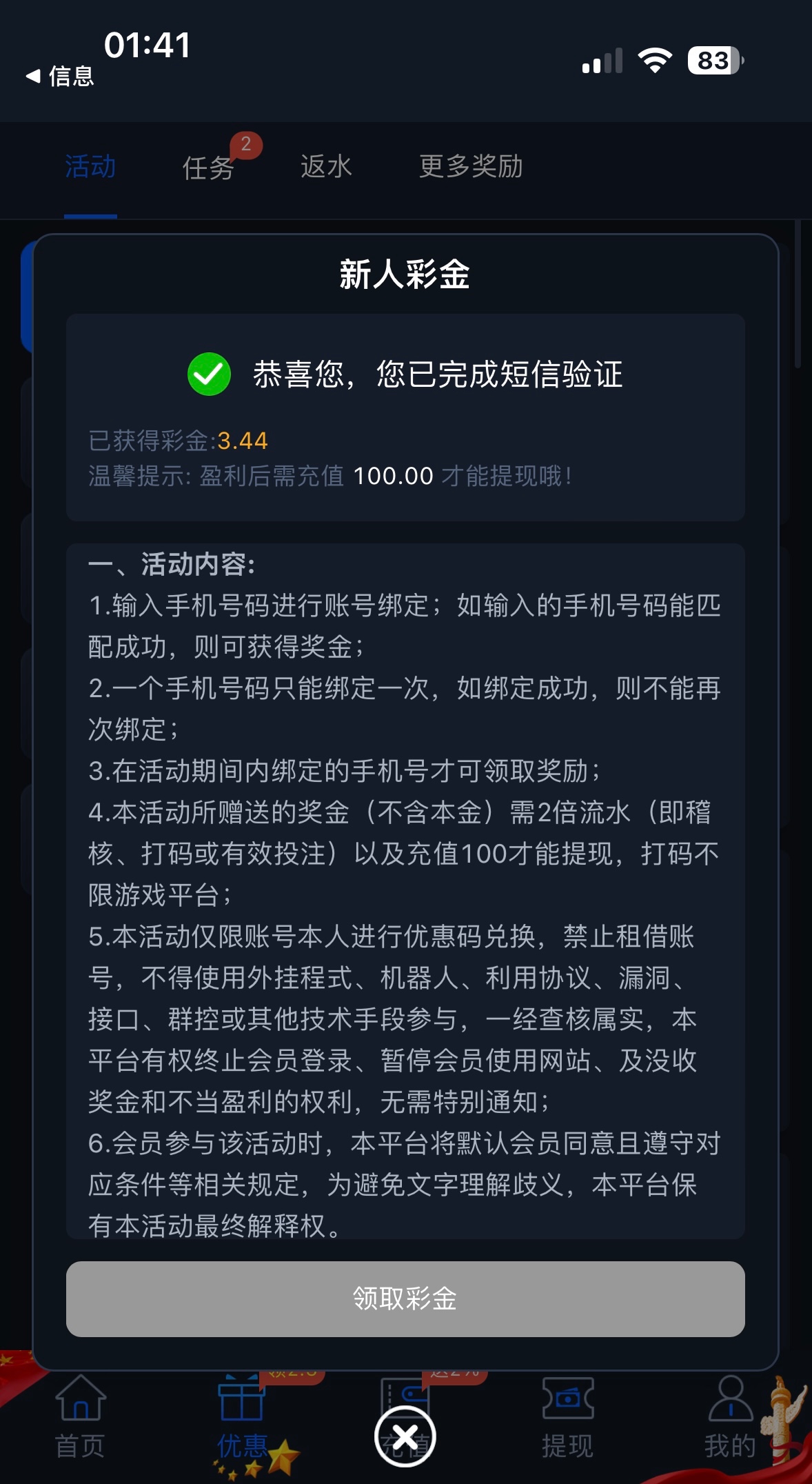 纱布送你麻痹,特邀送还特么要充值一百提现,这么大几个字黑几把台
