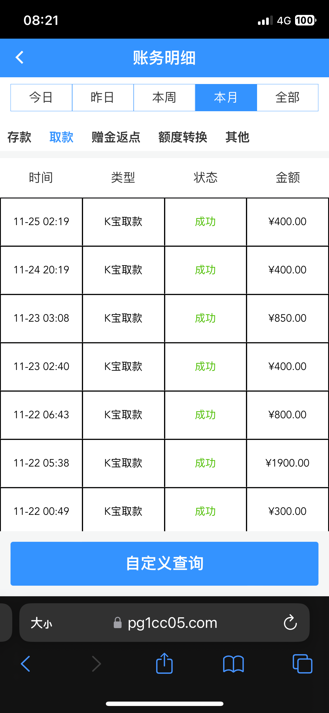 刚开始白嫖到一百,不给提现说要任意充值才能提现,现在充值了50打到400,提现又说要充值1000才能提现。大家避坑吧www.PG1.cc