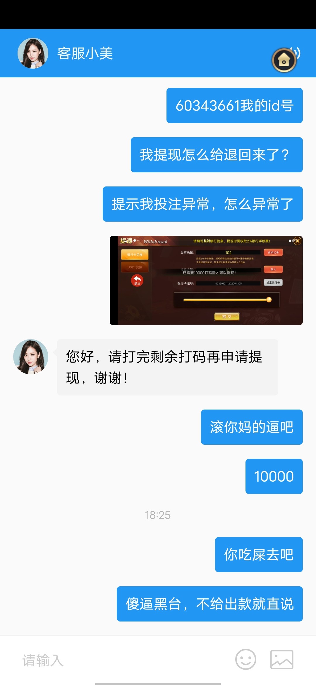 都别去了,黑鸡巴台一个!我打到106取款。说哦哦游戏异常,让再打10000码