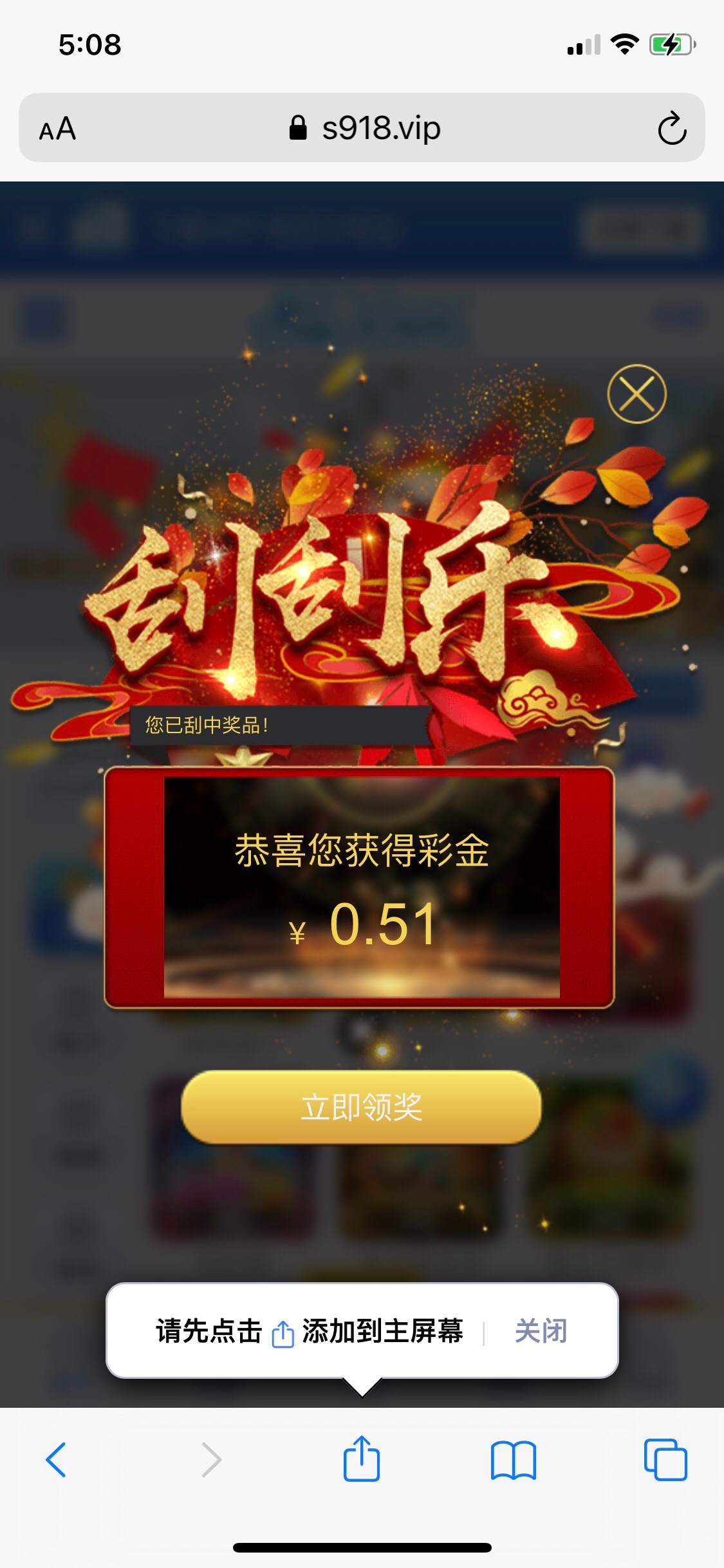 手机号注册刮奖,金额随机,最低好像7,刮奖以后绑卡彩金秒到……