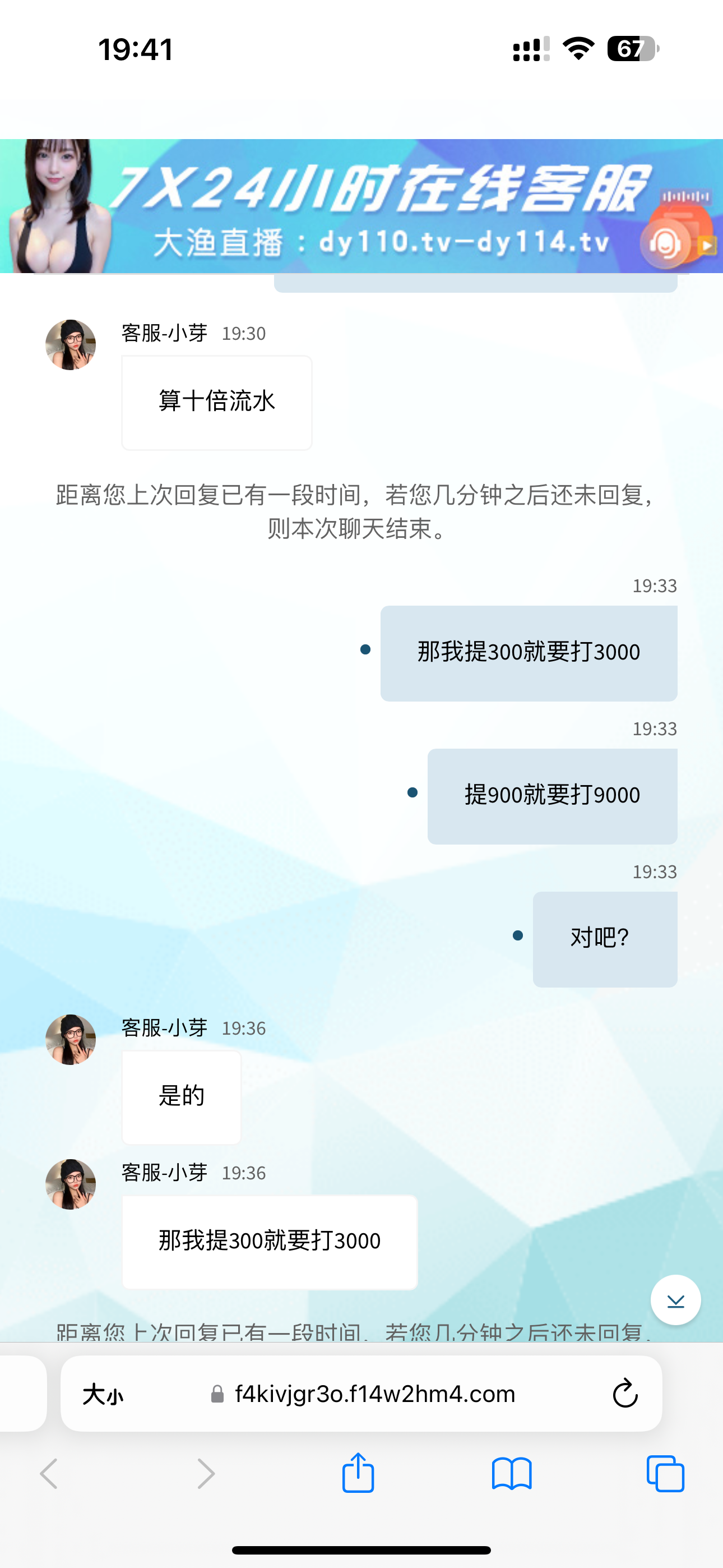 大渔直播 提现需要打提现额的10倍流水 如果是注单异常需要罚水我觉得还可以接受 但是平台就是这样规定要提现额的10倍才给通过 大家避雷