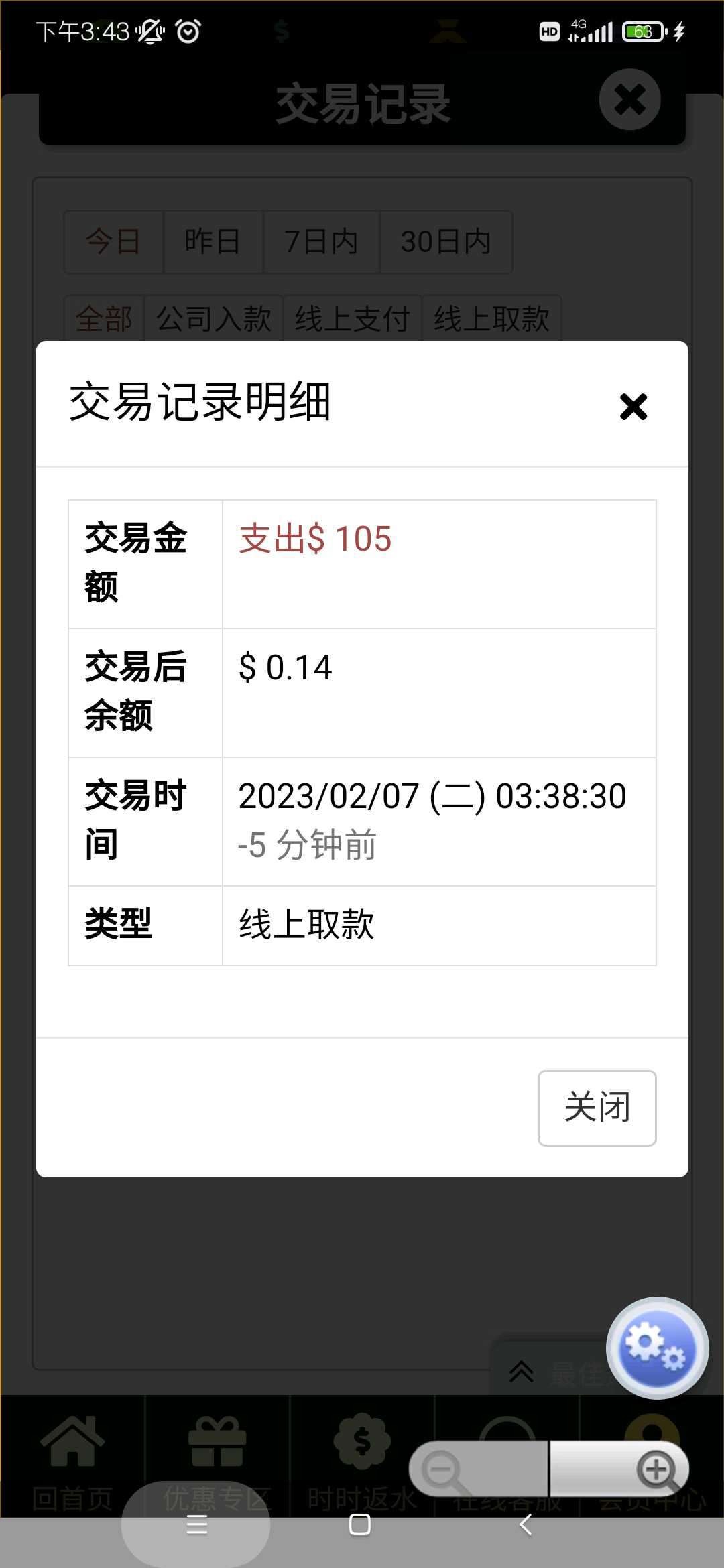 签到领的彩金,最低100提,